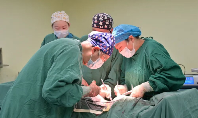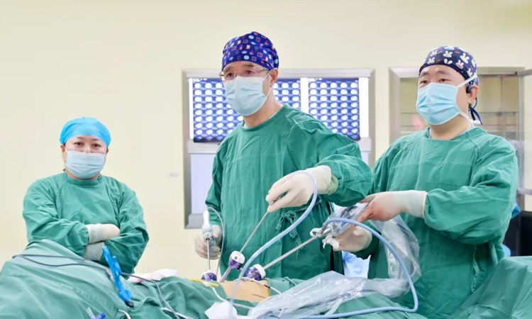 手术从一开始就充满挑战。当腹腔镜探入腹腔,眼前的景象比预想中更复杂:直径约 25cm×20cm 的巨瘤占据了腹腔大量空间,与周围组织紧密粘连,稍一触碰便引发渗血。原清华大学第一附属医院泌尿外科主任李胜文主刀凝神聚力,在狭窄的操作空间里精准分离粘连组织,每一次切割、结扎都力求稳准狠。时间一分一秒流逝,手术室里只有器械碰撞的清脆声响和医护人员沉稳的指令声。